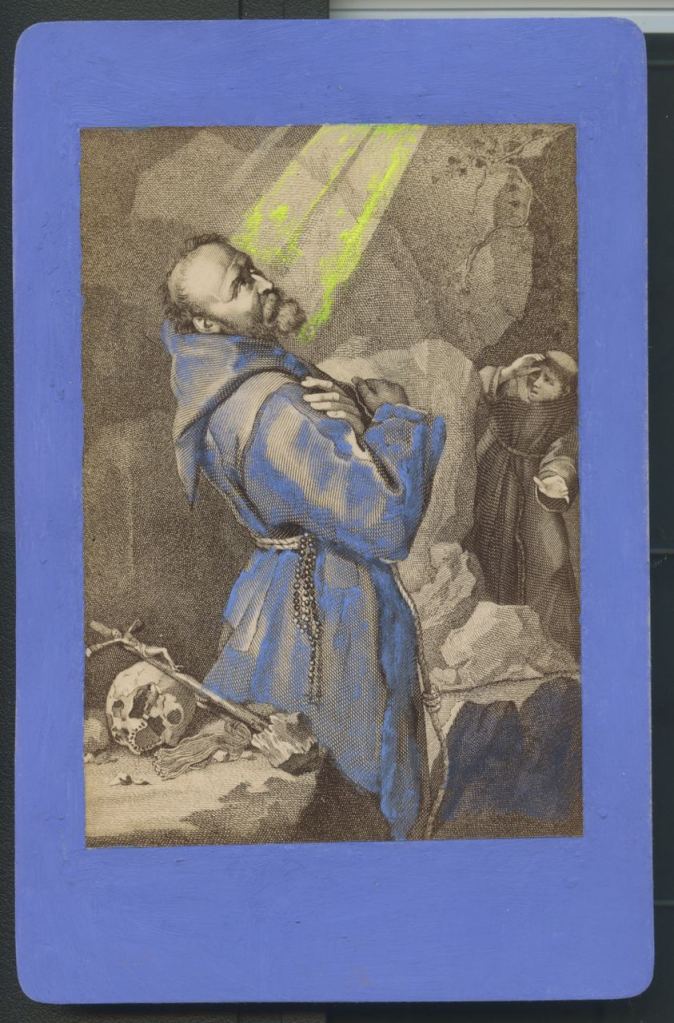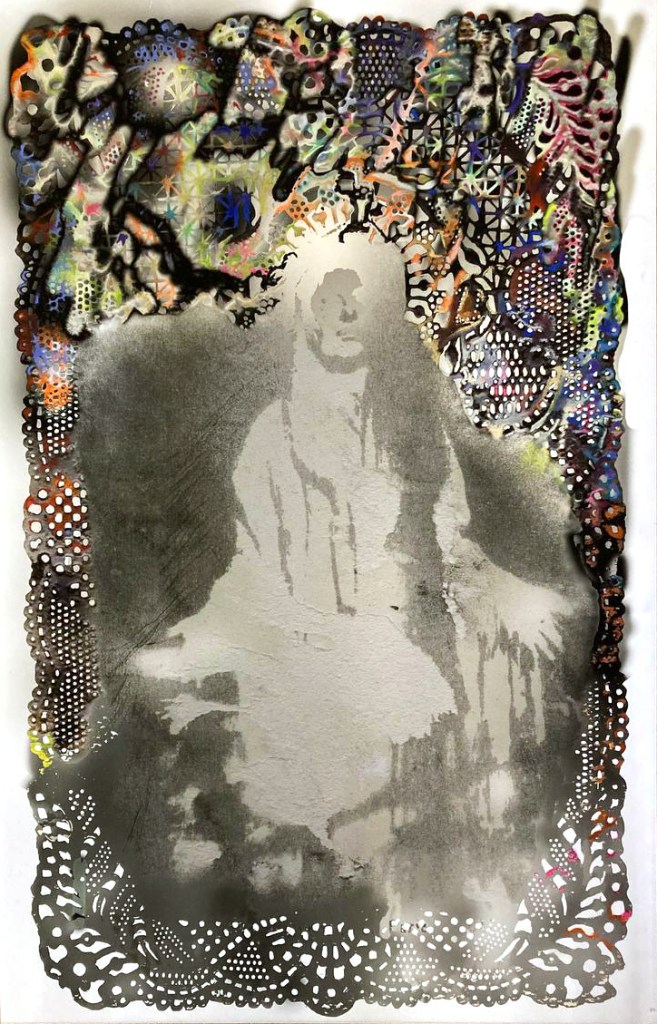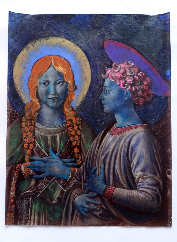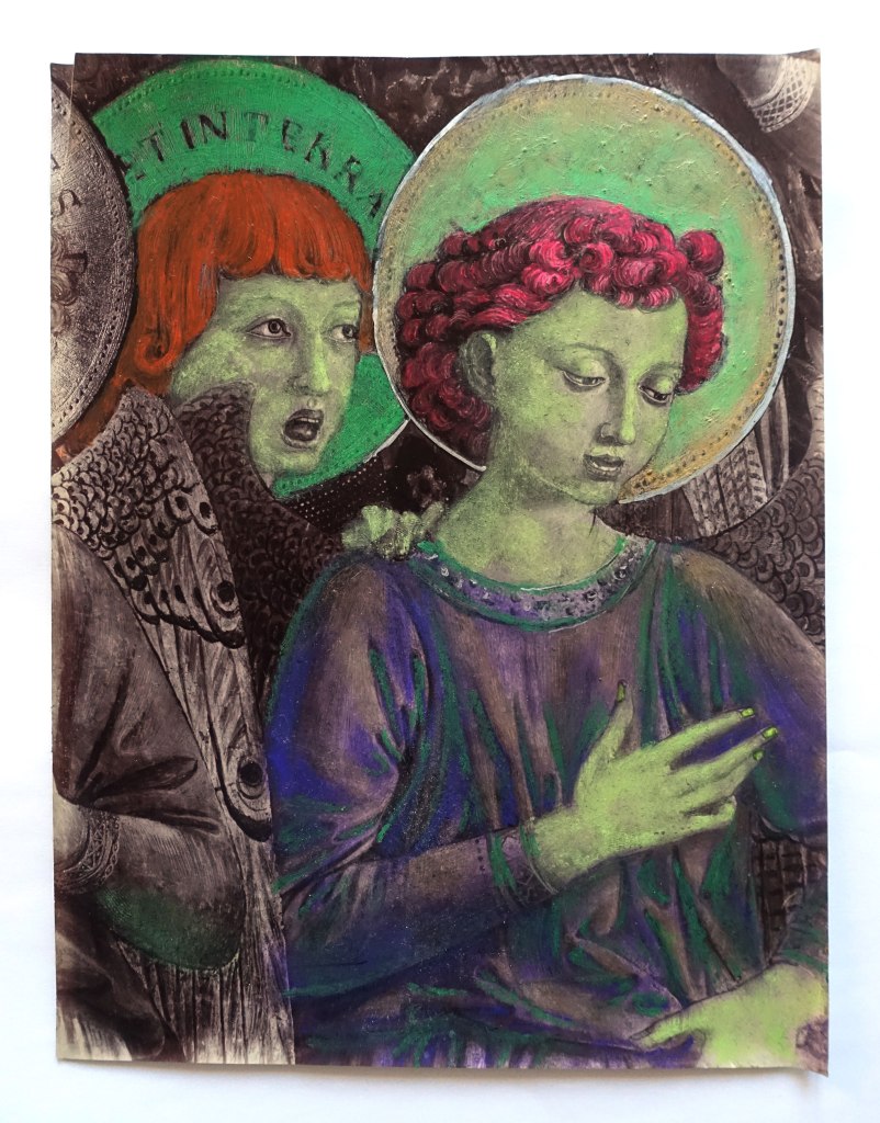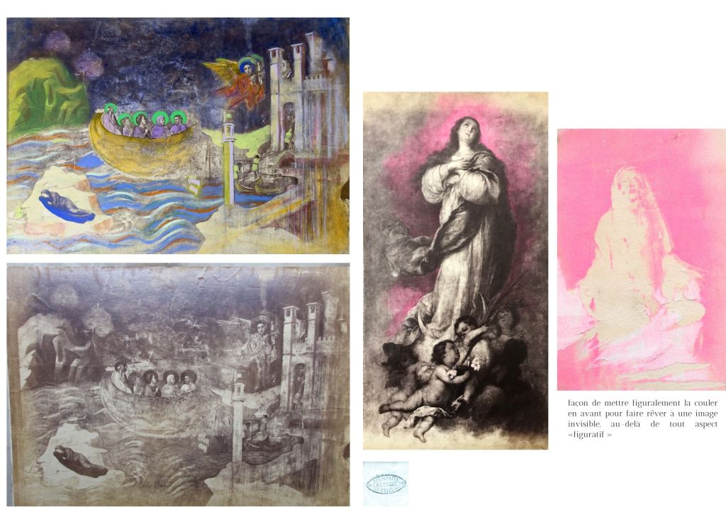 L’approche conceptuelle avec laquelle j’ai débuté ma pratique artistique, aussi bien en peinture qu’en écriture, se définit par le terme de « restauration spéculative ». Contrairement à la théorie classique de la restauration qui se concentre sur la préservation de la matérialité d’une œuvre sans toucher à son sens, ma démarche propose une reconstruction spéculative du sens même de l’œuvre, en particulier dans sa profondeur morale, doctrinale ou mystique, dans son sens figuré.